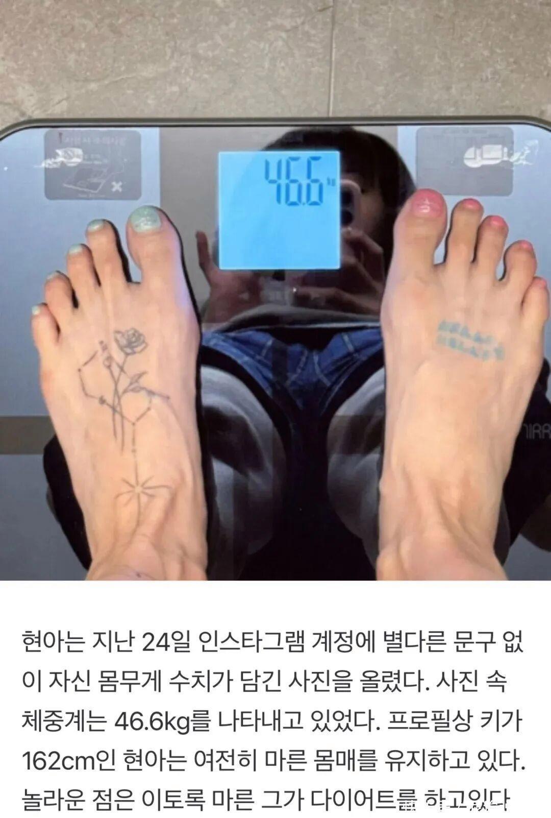 更令人担忧的是,婚后泫雅因"幸福肥"而遭到网友批评,为了重返舞台,她在一个月内从59公斤急速减至49公斤,暴瘦10公斤。这种急速减重无疑给她的身体健康带来了巨大负担。粉丝们注意到,她分享的照片中脚背有明显伤痕,显然是过度训练留下的痕迹。